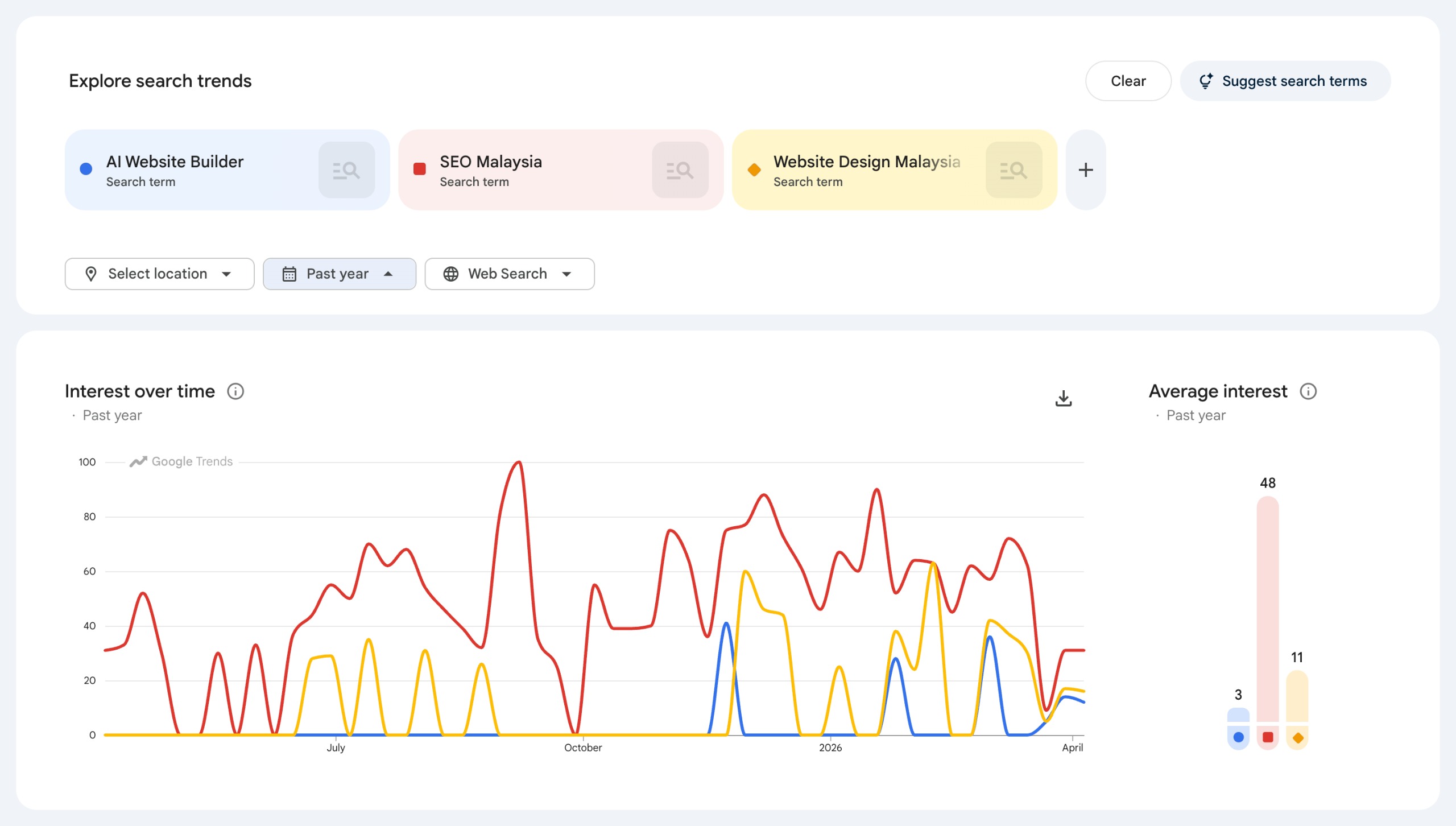 - Real-world example: If the keyword "AI website builder" is spiking on Google Trends Malaysia, a business can immediately create educational content or AI-based service promos, directly targeting an audience already searching for that solution.