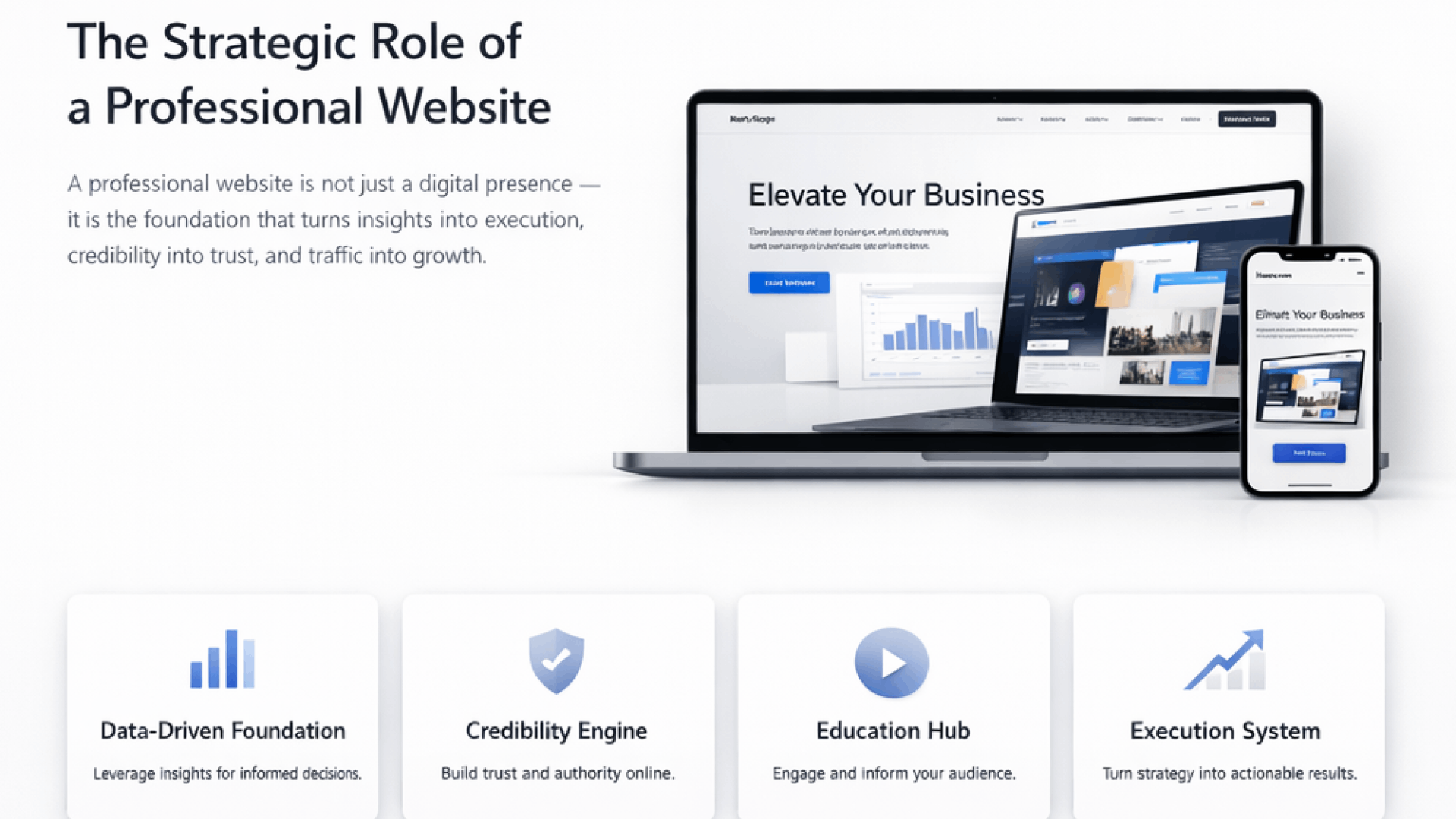 A professional website is the foundation for strategy execution. It is more than just a business profile; it is a hub for customer education, brand authority, and a medium to implement data insights—such as creating relevant content, landing pages, or timely promotions.